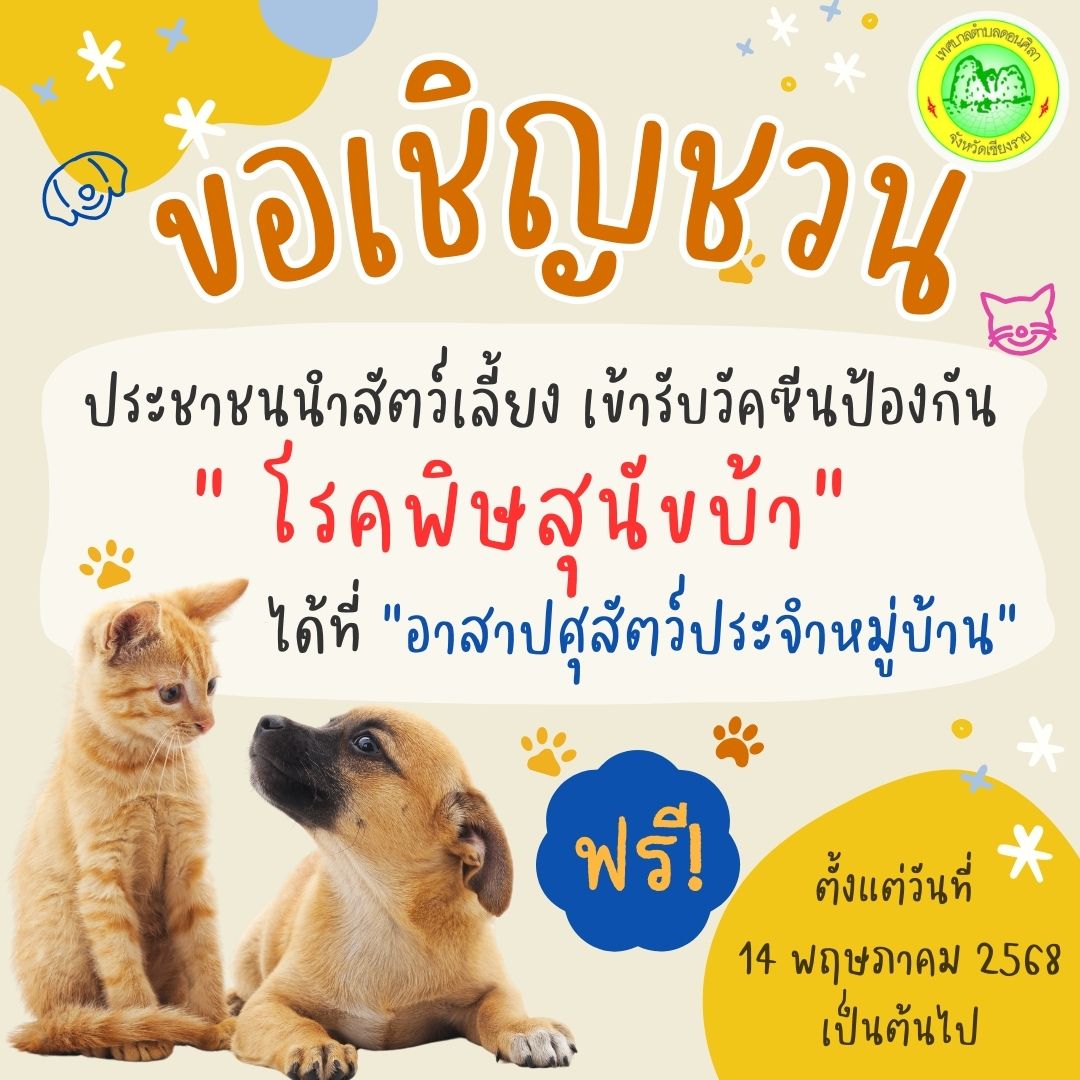 ขอเชิญชวน ประชาชนนำสัตว์เลี้ยง เข้ารับวัคซีนป้องกัน "โรคพิษสุนัขบ้า"