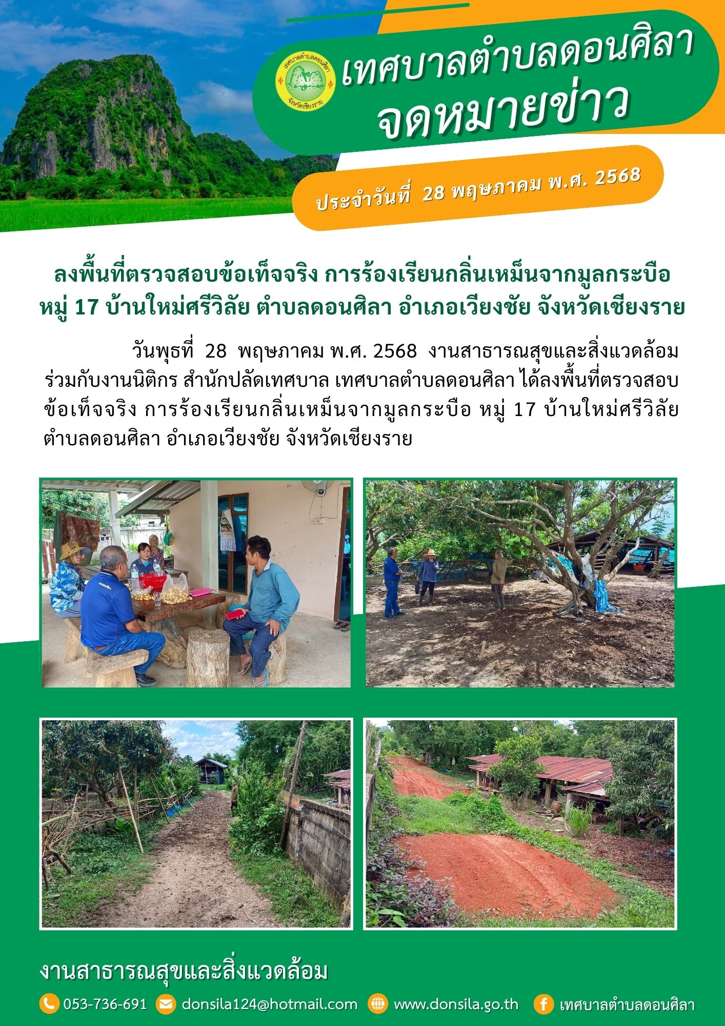 ลงพื้นที่ตรวจสอบข้อเท็จจริง การร้องเรียนกลิ่นเหม็นจากมูลกระบือ