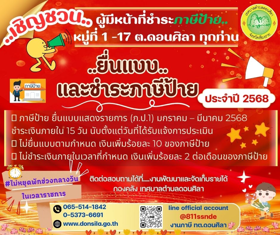 เชิญชวนผู้มีหน้าที่ชำระภาษีป้าย ประจำปี 2568
