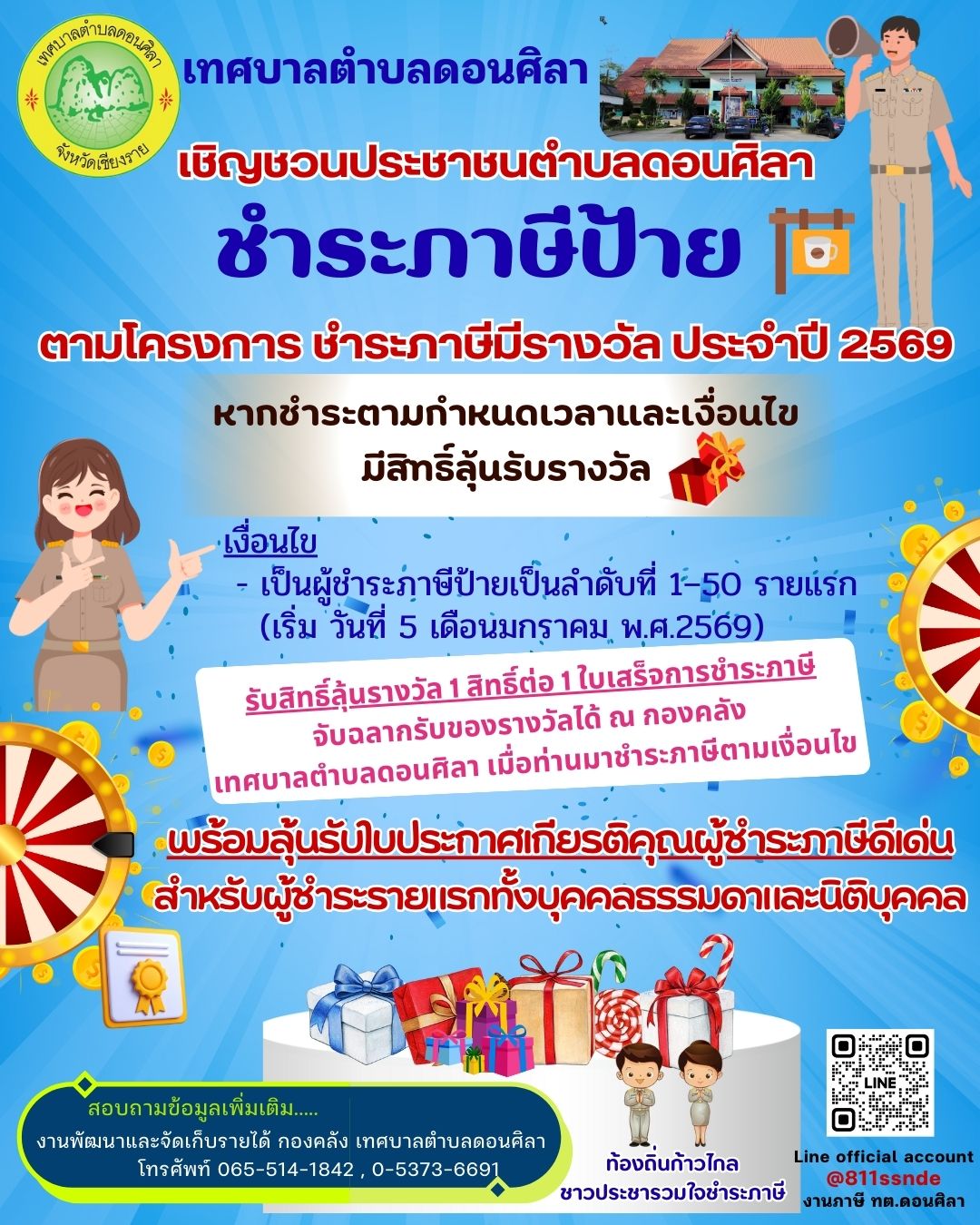 จึงขอเชิญชวนผู้เสียภาษีทุกท่านเข้าร่วมกิจกรรมดังกล่าวกับเทศบาลตำบลดอนศิลา
