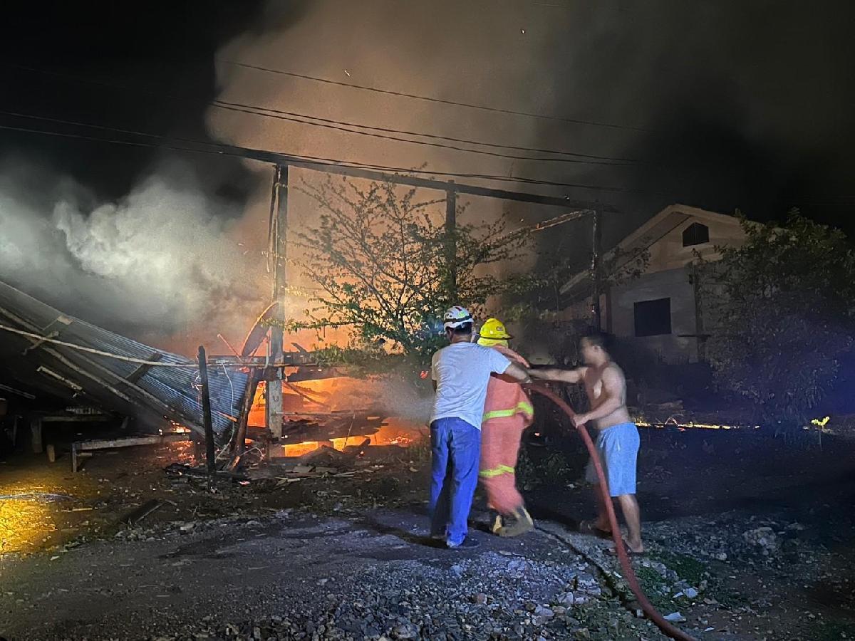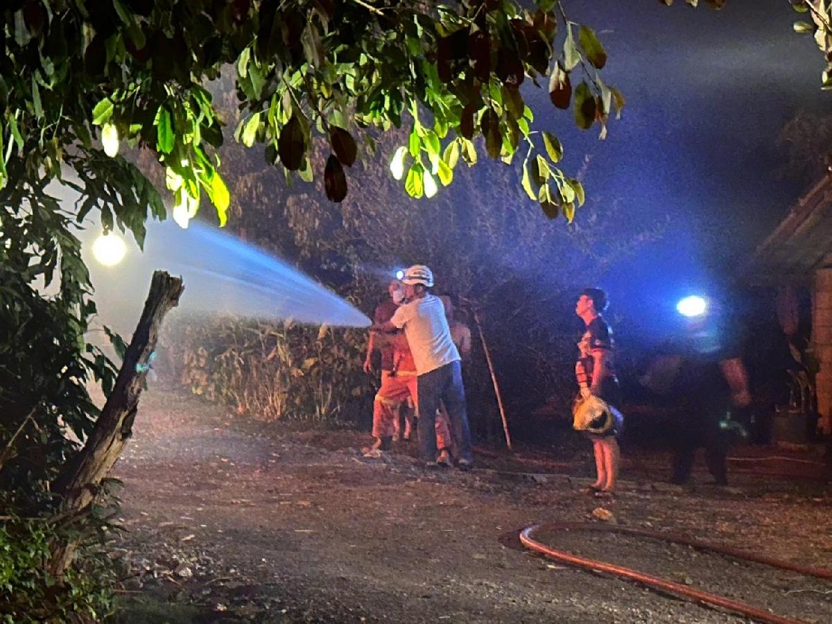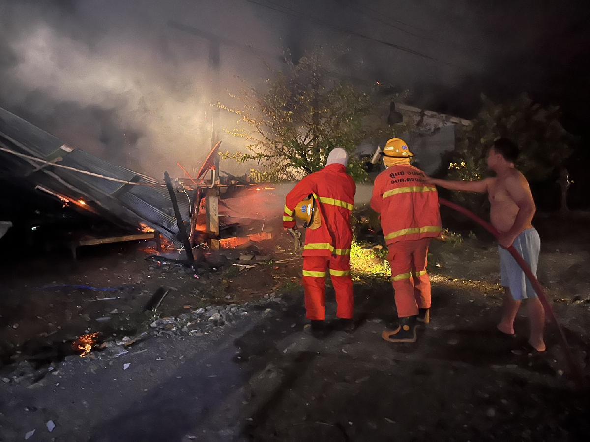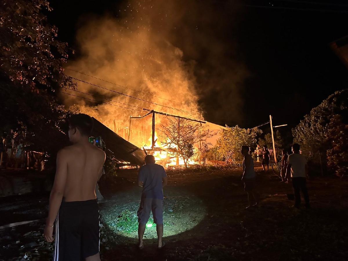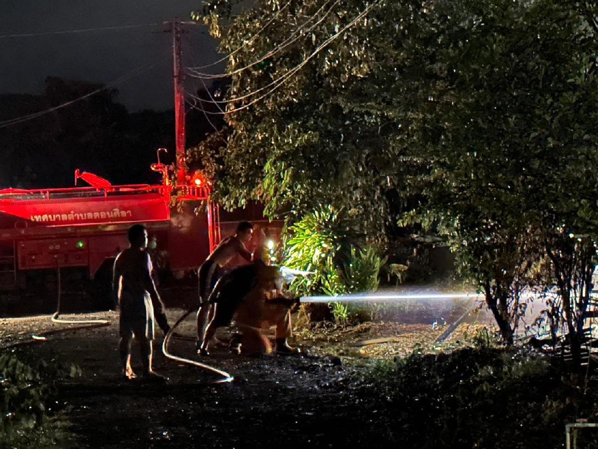 ได้รับแจ้งเหตุไฟไหม้จากผู้ใหญ่บ้าน หมู่ที่ 14 ว่าเกิดเพลิงไหม้บ้าน นายสมบูรณ์ อามะแว่น บ้านเลขที่ 17 หมู่ 14 ดังนั้นจึงได้นำรถบรรทุกน้ำเอนกประสงค์ ขนาด 6,000 ลิตร เข้าพื้นที่ ทันทีในเวลา 23.01 น. และถึงที่เกิดเหตุเวลา 23.12 น. ตามมาด้วยรถบรรทุกน้ำเอนกประสงค์ ขนาด 10,000 ลิตร เมื่อไปถึงที่เกิดเหตุ พบว่าไฟกำลังลุกไหม้อย่างรุนแรง ดังนั้นได้ดำเนินการตัดกระแสไฟฟ้าบ้านดังกล่าวและดำเนินการดับเพลิงโดยทันที่จนดับสนิท เวลา 00.18 น. จากการตรวจสอบเบื้องต้น พบว่า เป็นบ้านไม้ชั้นเดียว ยกสูง เสียหายทั้งหลัง