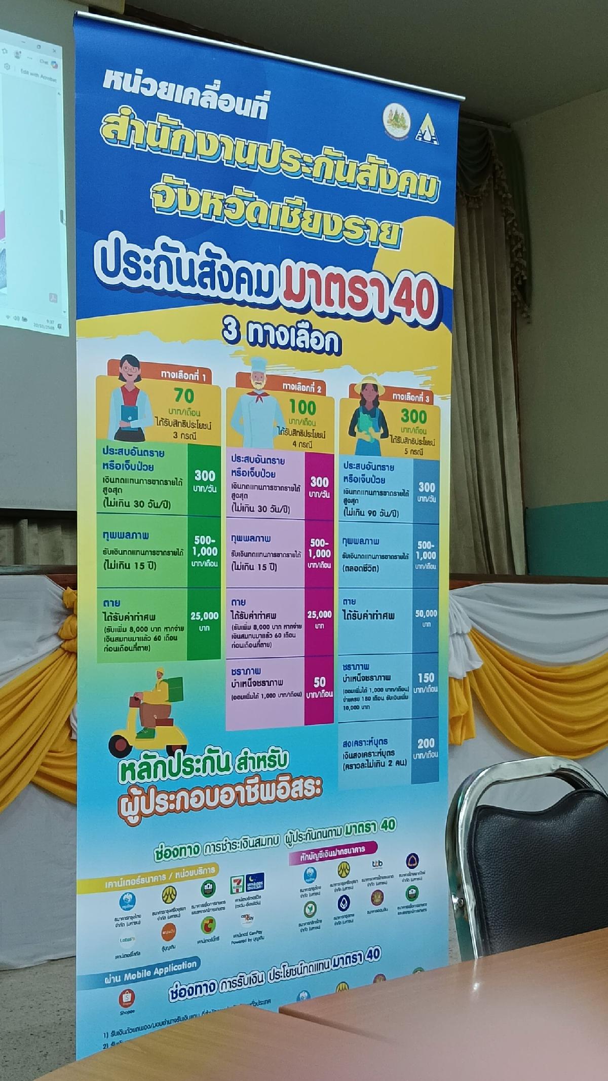 สำนักงานประกันสังคมจังหวัดเชียงราย ประชาสัมพันธ์การจัดสวัสดิการประกันสังคม มาตรา 40